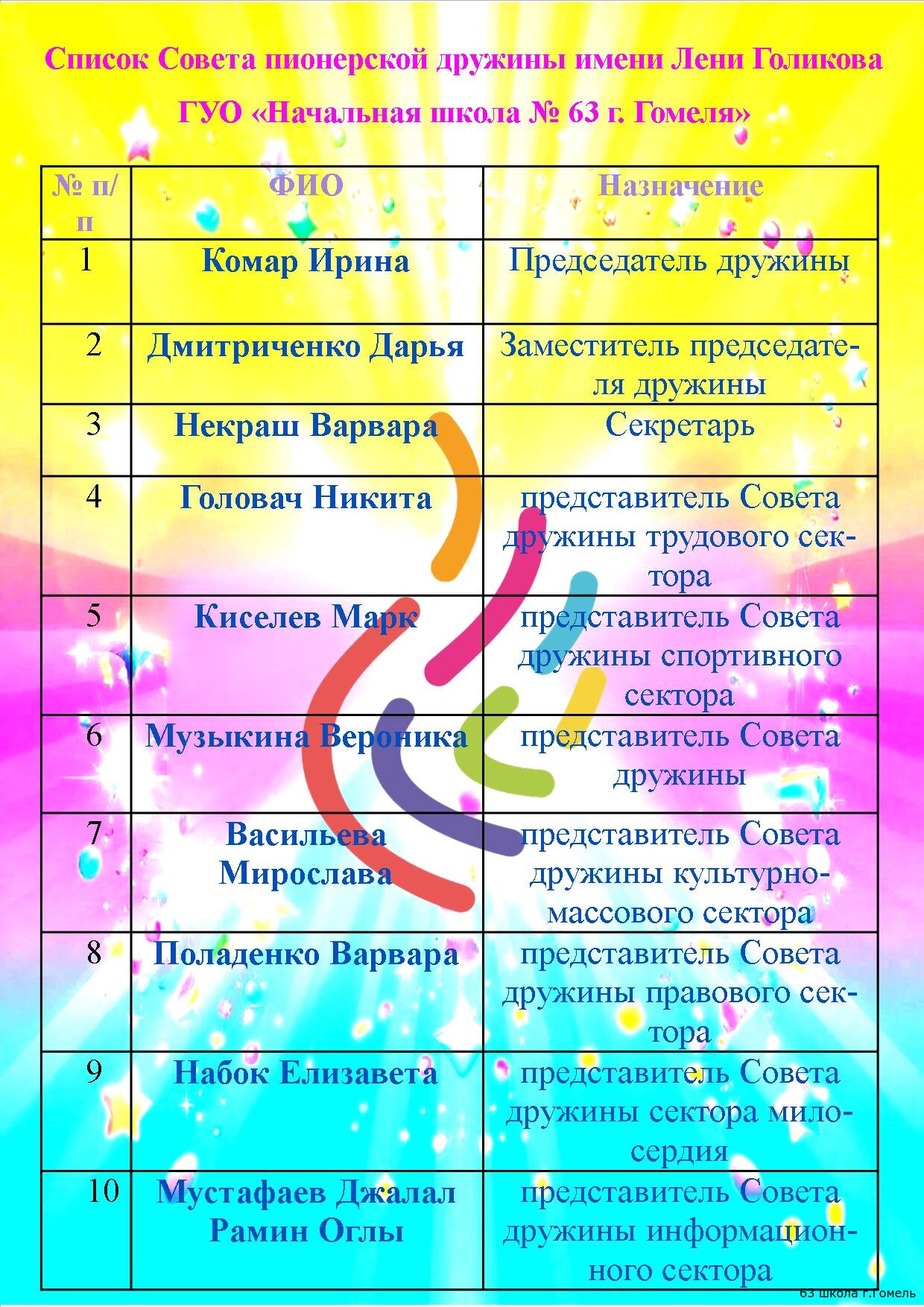 Сегодня в торжественной обстановке пионерская дружина им. Л. Голикова ГУО "Начальная школа №63 г. Гомеля" пополнилась активными, смелыми, находчивыми и ответственными мальчиками и девочками, которые теперь будут гордо зваться пионер!