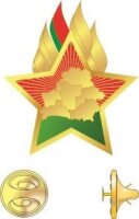 Значок октябрятский (октябрятская звездочка) – нагрудный значок в виде пятиконечной звездочки, три верхних луча которой окрашены в красный, два нижних – в зеленый цвет. В центре звездочки – барельеф карты Республики Беларусь золотистого цвета. От верхних лучей устремляются ввысь три языка пламени, часть первого окрашена в красный и зеленый цвета, соответствующие цветам Государственного флага Республики Беларусь. Звездочка имеет окантовку золотистого цвета.