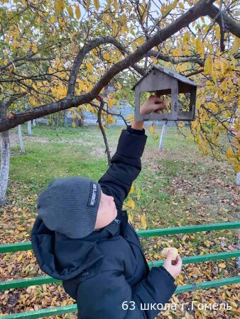 Синичкин день отмечается 12 ноября как экологический праздник, посвященный встрече зимующих птиц, в частности синиц. Он связан с днем памяти святого Зиновия Синичника (по старому стилю 30 октября), и в этот день принято готовить кормушки для птиц, чтобы помочь им пережить зиму. Традиционно ребята из групп продлённого дня ГУО "Начальная школа 63 г Гомеля" в этот день делают кормушки, поделки, рисунки птиц, изучают виды птиц и их особенности.