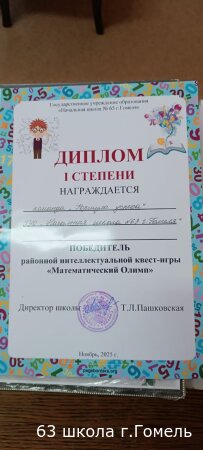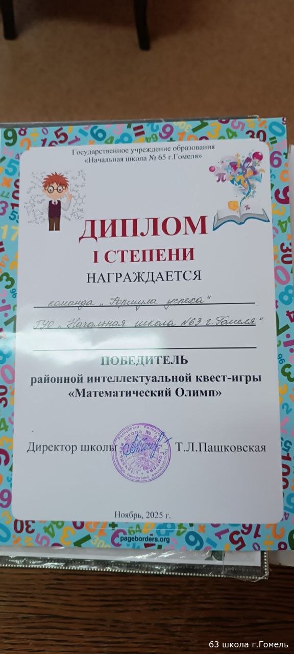 Поздравляем команду третьих классов ГУО "Начальная школа 63.г.Гомеля" с победой в районной интеллектуальной квест-игре "Математический Олимп"! Вы большие молодцы! Гордость школы!