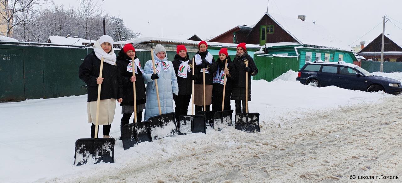 ❄️Представители нашей школы Новобелицкого отделения Белорусской партии «Белая Русь» вышли на активную уборку снега с пешеходных дорожек.