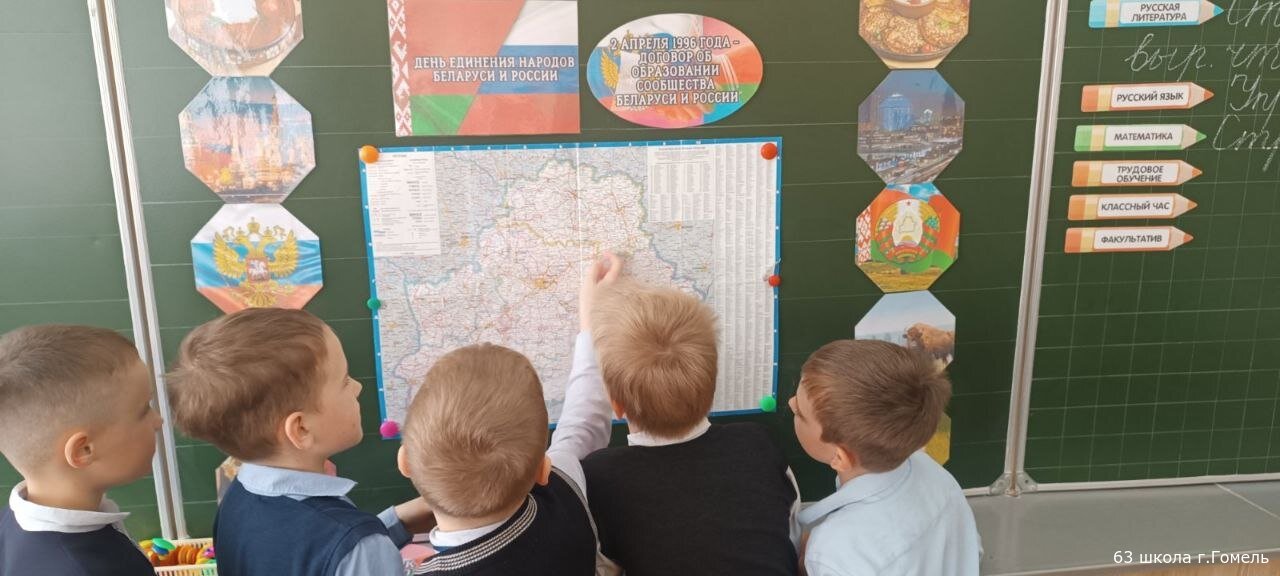 В ГУО"Начальная школа 63 г.Гомеля" для учащихся прошел единый урок, посвященный Дню единения народов Беларуси и России.